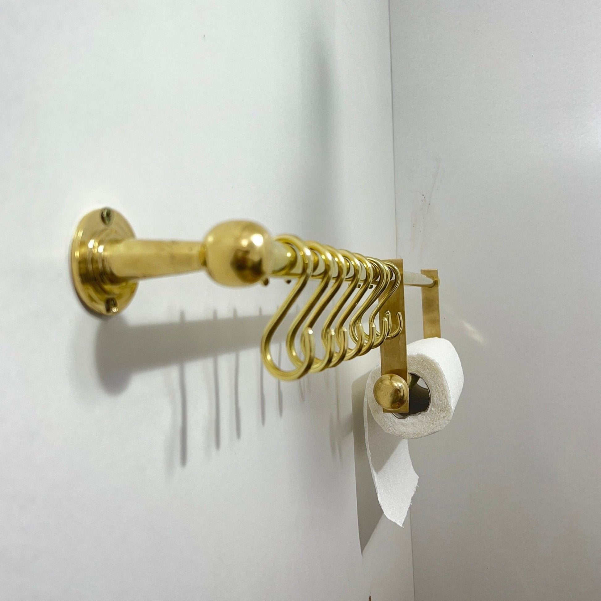 Unlacquered brass pot rail and tissue holder for kitchen, Solid brass construction. A beautiful pot rail that will last a lifetime.