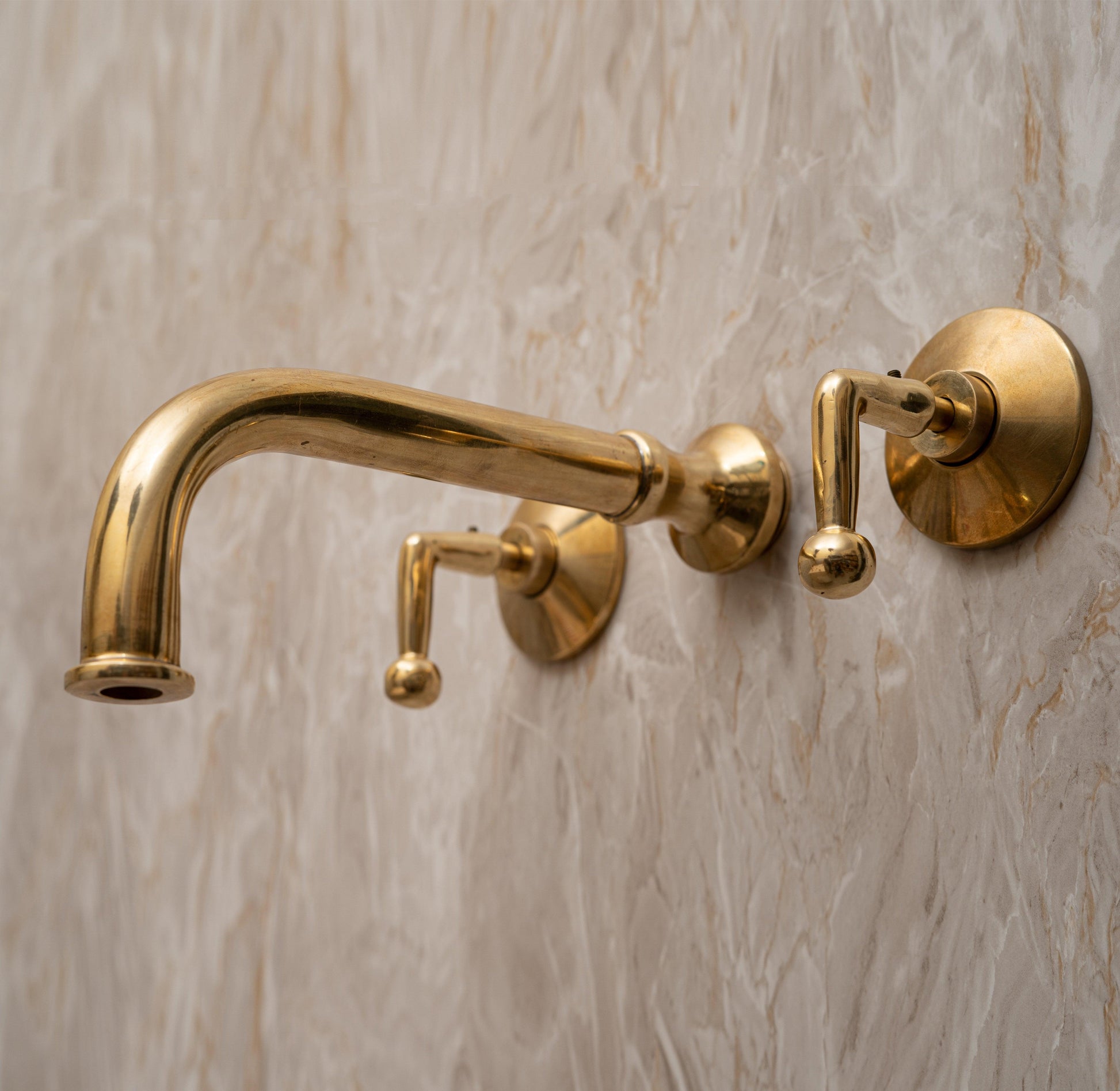 Unlacquered Brass Wall Mounted Bathroom Faucet